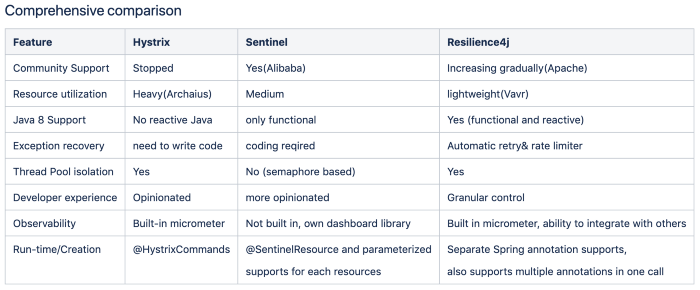 Comparison of 3 popular libraries: Hystrix, Sentinel and Resilience4j