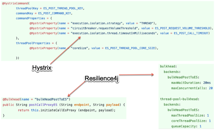 Semantically, Hystrix has configurations in the code therefore is it tightly
