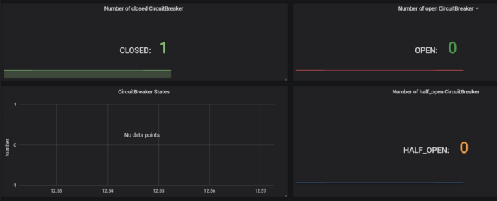 The States of the circuit breaker: Micrometer->Prometheus->Grafana